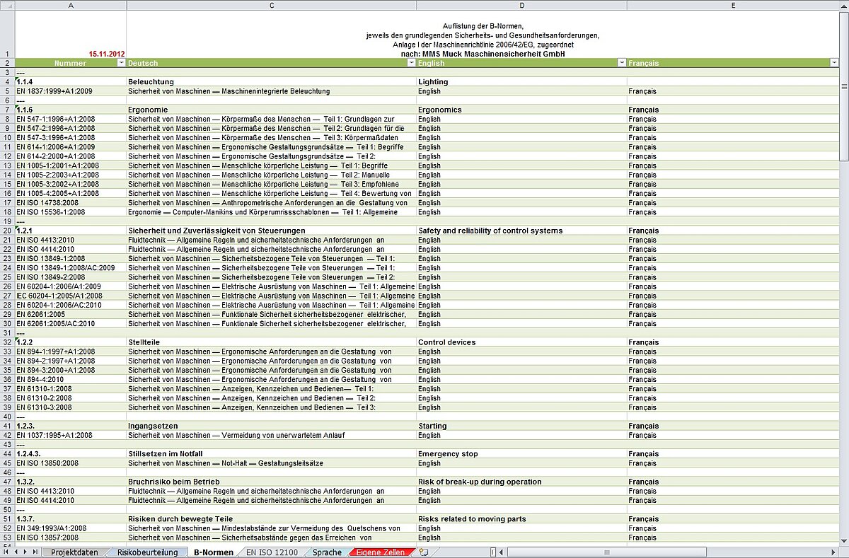 MBT-RAT: Risikobeurteilung mit Excel - Anleitung "B-Normen"